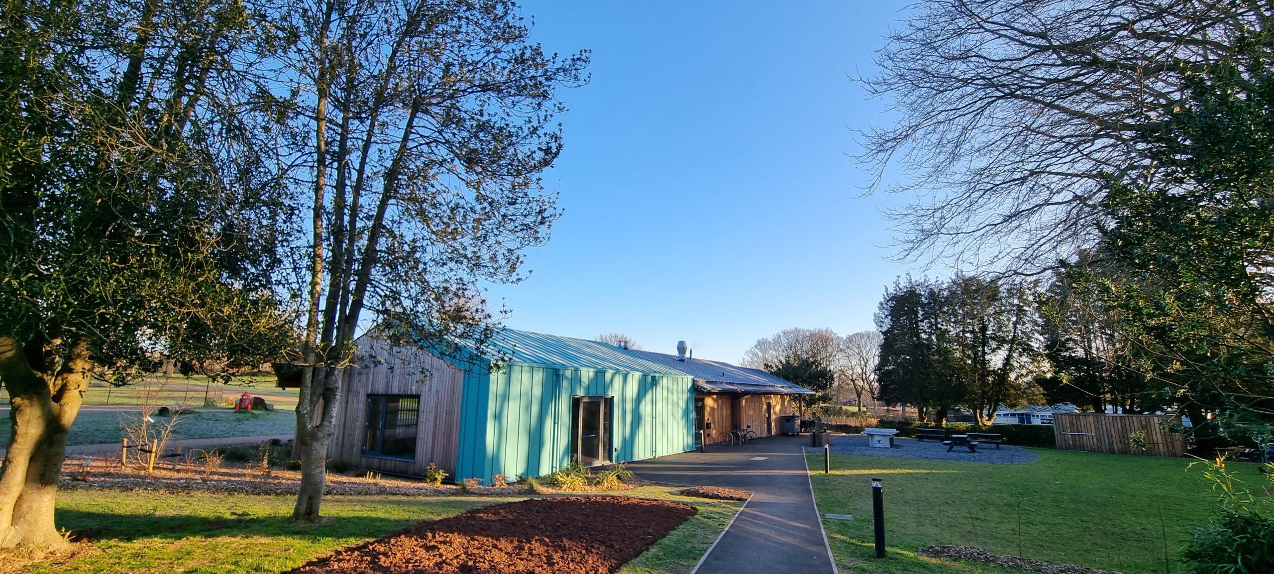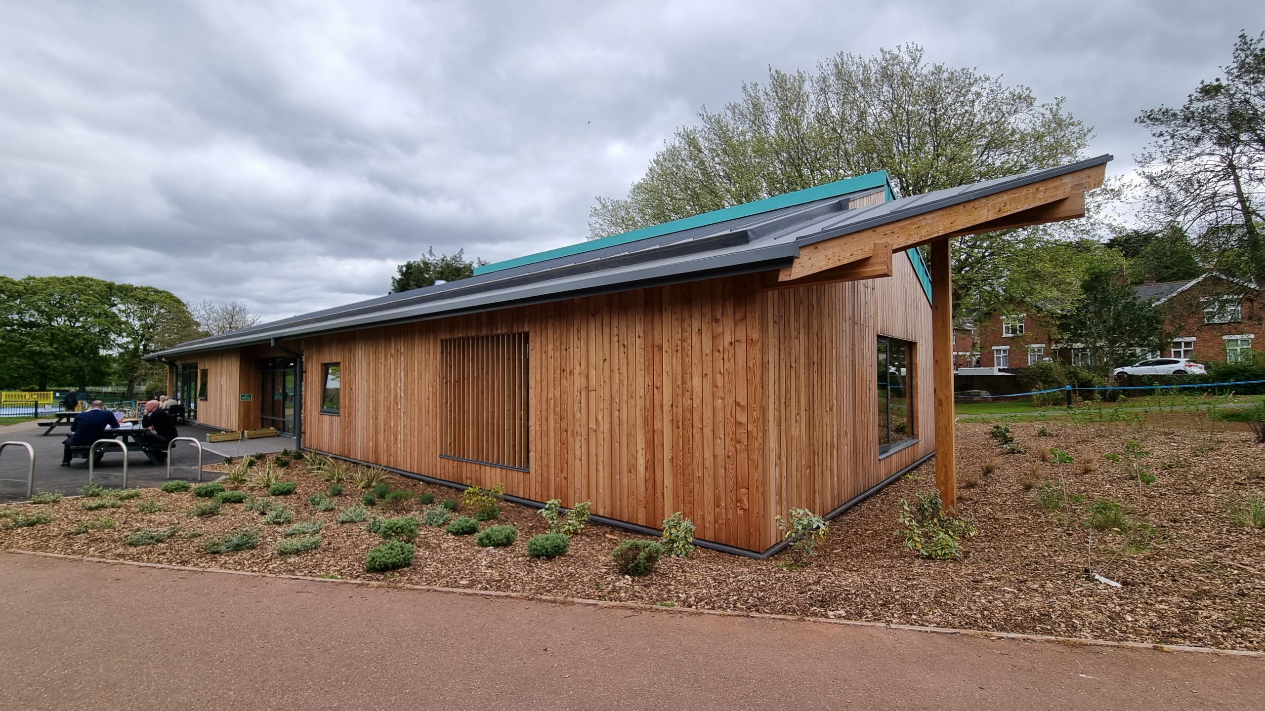 We are proud to have been involved with Park Life in their quest to improve community facilities within Heavitree Pleasure Grounds. Overwhelmingly positive support from the local residents and wider users of the park, and positive responses from Exeter City Council and the Planning office, have after several years gestation enabled Park Life to develop the proposals towards firm construction proposals. The local community has been consulted and involved through all stages to develop a brief for the building which will suit a wide range of needs. The community cafe provides an every-day meeting place and forms the hub of the activity. In addition a multi-purpose hall is available for hire to local groups, activities, individuals and businesses for meetings, classes, talks, parties, etc. The building is located to be visible from the main entrance to the park and respond to the focus of activities in this area, particularly as families use the pools and play areas heavily in the summer. It is a simply structured and carefully designed building demonstrating a sustainable approach to building not just a space but a community; it supports the wide range of social and support activities that Park Life are developing. We are pleased to be able to include here early design sketches that formed part of early public consultation before being further developed towards a Planning Application in the summer of 2017; alongside photos after completion.